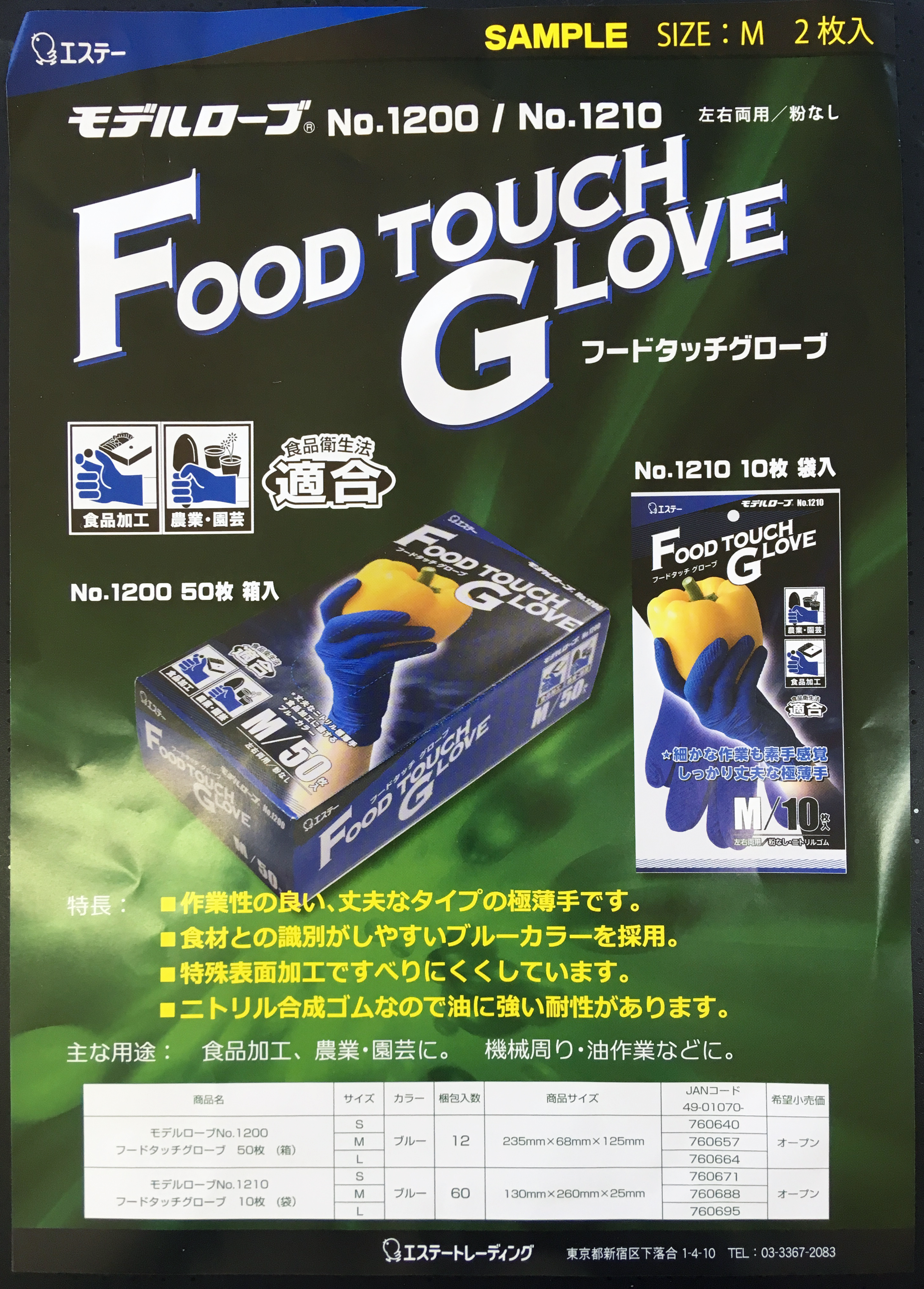 食品加工全般(特に冷凍食品)、農業・園芸に。また、機械周り・油作業にも。