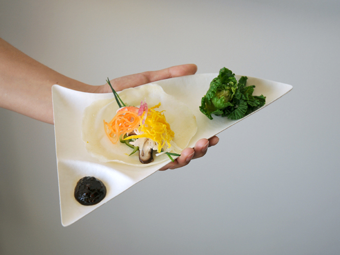 パーティーや会食などのワンウェイ(使い捨て)の皿やコップとは全く違うデザイン、手ざわりの紙の器シリーズ「wasara」のご紹介です。
