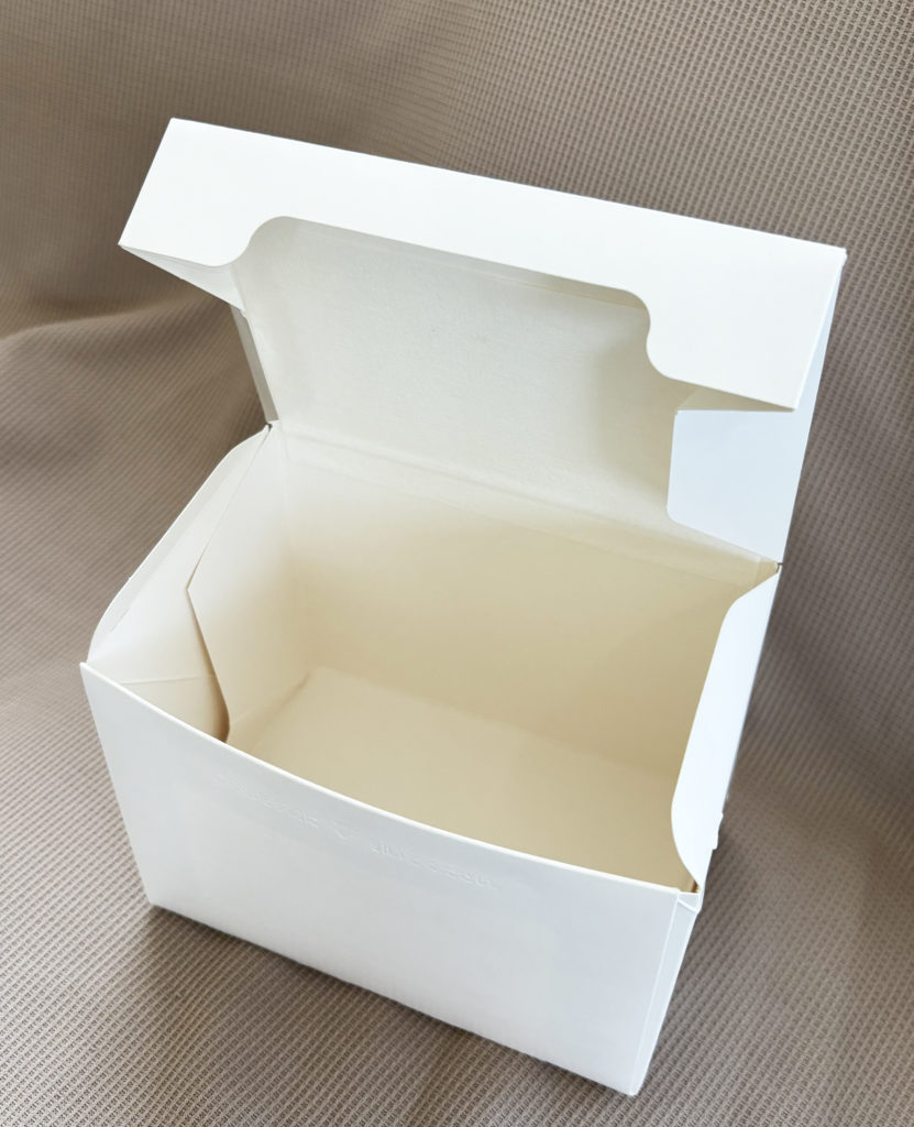 保冷剤を蓋側のポケット、または側面ポケットに入れることで保冷効果のある紙箱です。サイドオープンで、ケーキを崩さず箱から出すことができます。
