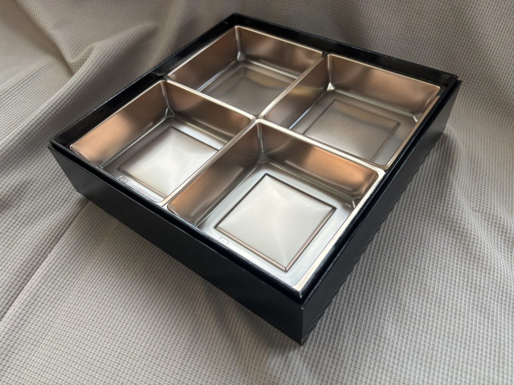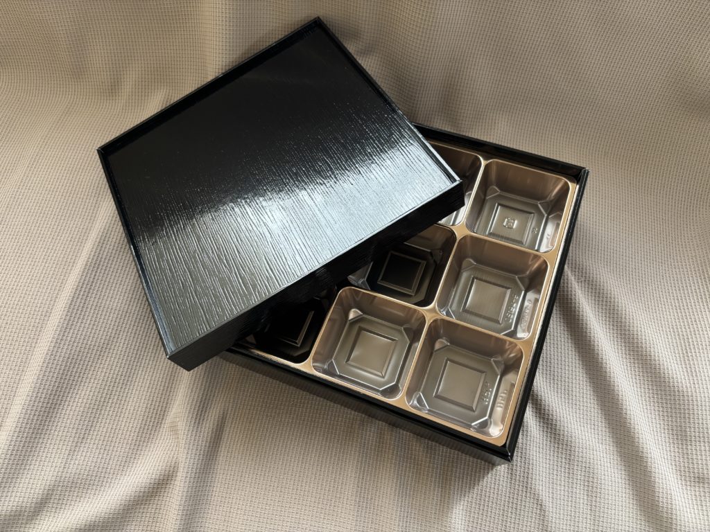2025年9月24日 / 最終更新日時 : 2025年10月2日 kajikawa-bussan 重箱・折箱 おせち・お正月オードブル重箱 蓋付重箱6寸1段(黒・赤)9つ仕切り入り/蓋付 ¥700(税別) 販売ロット10個 蓋付重箱7寸1段(黒・赤)9つ仕切り入り/蓋付 ¥840(税別) 販売ロット10個 折箱に上品な金カラーの仕切りでおせちなどの盛付けを美しく彩ります。 6寸・黒 6寸・黒 6寸・黒 6寸・赤 6寸・赤 6寸・赤 蓋付重箱8寸1段(黒・赤)4つ仕切り入り/蓋付 ¥870(税別) 販売ロット10個 8寸・黒 8寸・黒 蓋付重箱8寸1段(黒・赤)紙皿80-花(松花堂)/蓋付 ¥880(税別) 販売ロット10個 8寸・赤 花柄の陶器風紙皿入り 8寸・赤 花柄の陶器風紙皿入り Follow me! FacebookXBlueskyHatenaCopy